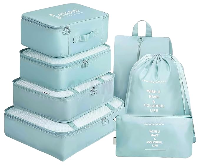 7pcs Set Travel Organizer Packing Cubes Lightweight Travel Luggage Organizers with Laundry Bag or Toiletry Bag Laundry Organiser (7 PCS) (Beige)