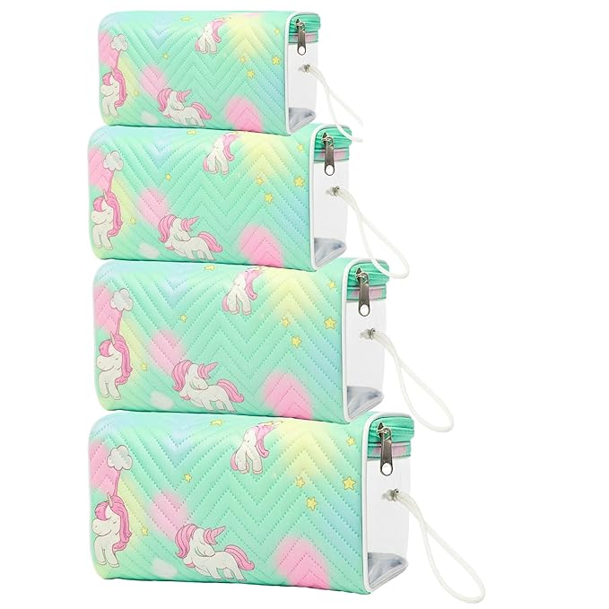 Pack of 4 Multipurpose Large Capacity Makeup & Pencil Pouch | Cosmetic, Stationery & Travel Essentials Organizer Bags (Light Blue)