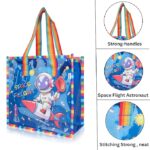 Each bag features strong rainbow-colored handles for a comfortable grip and a spacious interior to carry books, lunch boxes, toys, stationery, or daily essentials. The bright designs like Unicorn, Space Flight, Travel, and Fashion themes make them especially appealing to children.